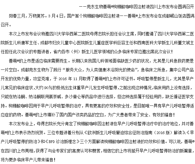 2019年7月25日,苑东生物芬立平®布洛芬注射液获批“用于6个月及以上儿科患者的解热和镇痛治疗”新适应症,有效地满足了国内6个月以上儿科患者退热、镇痛领域的安全用药需求。